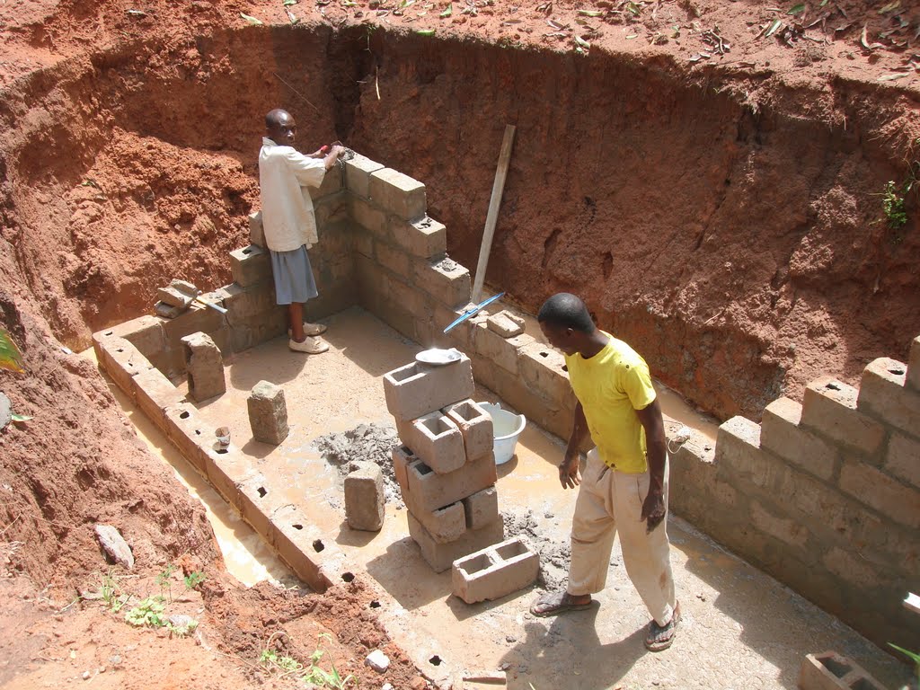 and block laying on the cistern has been done by locals. They need the work and Jacques is getting a